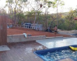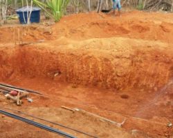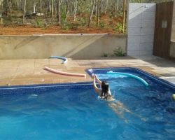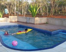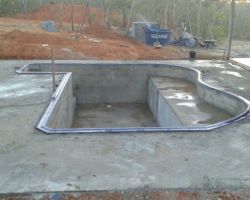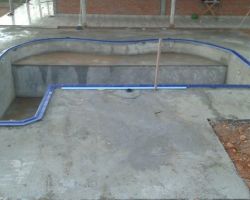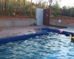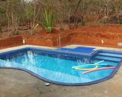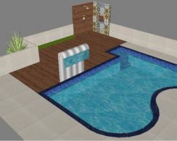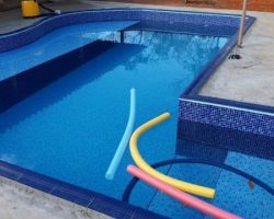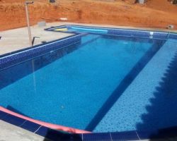 Projeto realizado no interior de Minas, a 400 km de BH. Piscina de vinil com amplo espaço para crianças, com três degraus de acesso, iluminação de última geração, com acionamento a distancia. Área de lazer, ducha e acabamentos desenvolvidos exclusivamente pela Versátil Piscinas.